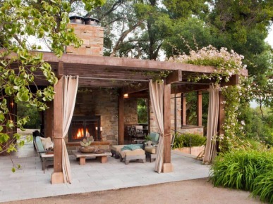 - Обширный навес. Большая часть сада должна быть затенена. Для этого чаще всего используются перголы – решётчатые навесы из тонких реек, которые служат опорой для вьющихся растений.