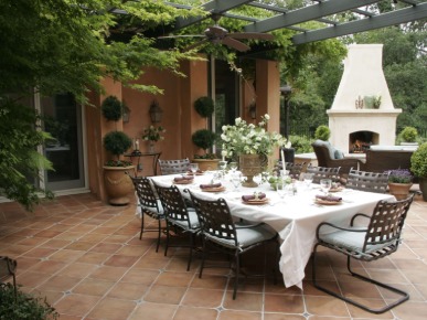 Важной частью дизайна в средиземноморском стиле является оформление сада. Выбранные для этого декоративные элементы формируют определённое направление. Так, греческий стиль в ландшафтном дизайне предполагает отделку искусственно состаренным мрамором, в качестве декора используются античные статуи и амфоры, каменная беседка или портик с колоннами. Непременной принадлежностью итальянского стиля является патио – примыкающая к дому мощёная площадка, часто под навесом, где устанавливают садовую мебель. Мавританский стиль – это небольшой бассейн или фонтан с мозаичной облицовкой и медные марокканские светильники на подвесах. Вариантов множество, и выбор окончательного решения целиком зависит от ваших пожеланий.