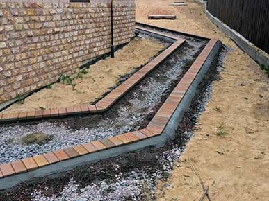 На этом объекте перед нами стояла задача - полностью благоустроить участок и сделать правильную геопластику территории. Начали с планировки, так как участок расположен на склоне, и его нужно было разделить на зоны «ступенями». Каждая зона по мощению выделялась лестницей, а газон - резкими подъемами. Каждый подъем выполнен по технологии с использованием георешетки для того, чтобы склоны не размывало, и они сохранили свою форму на многие годы. Затем выполняли ряд земельных работ, связанных с дренажом, прокладкой труб ливневой канализации с установкой смотровых колодцев, прокладкой кабеля для освещения участка и подготовкой основания под мощение. Со стороны въезда залили бетонную ленту с установкой столбов для забора и калитки. Установили металлические закладные и залили основание для дальнейшего монтажа откатных ворот.