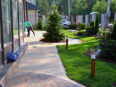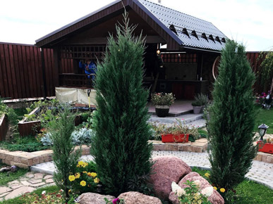 - Озеленение участка. Это завершающий этап ландшафтного дизайна под ключ (цена на сотку или за каждое посаженное растение – по договоренности с заказчиком). Согласно заранее составленному дендро-плану, высаживаются деревья, кустарники, цветы.