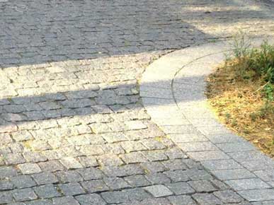 - Чтобы выполнить мощение дорожек брусчаткой, главным образом применяется натуральный камень. Самым прочным признан гранит и мощение гранитной брусчаткой. Может быть обработанный и естественный.